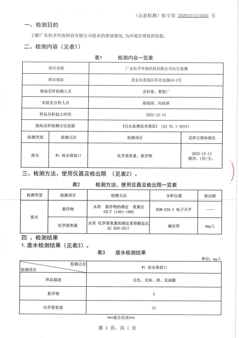 (恒孚)22年12月雨水检测报告ZH20221215002